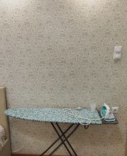 из техники в комнате - телевизор, бризер с фильтром, утюг с гладильной доской, увлажнитель воздуха.