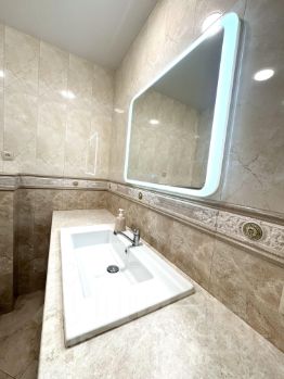 Квартира укомплектована мебелью, техника: кондиционер, холодильник, стиральная машина, чайник, варочная поверхность, духовой шкаф, роутер. Санузел совмещенный, оборудован душевой кабиной.