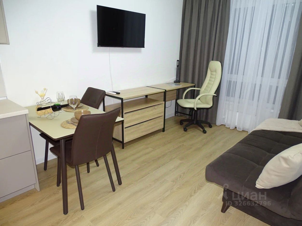 В кухне-гостиной установлена мощная сплит-система, современный кухонный гарнитур (2,85 х 1,95 индивидуальный проект), со встроенной техникой (посудомоечная машина, индукционная плита, духовой шкаф, СВЧ-печь, вытяжка с подсветкой, холодильник 2-камерный, чайник). Раскладывающийся диван с местом хранения, комод, рабочее место с подсветкой и офисным креслом, обеденный стол с покрытием из закаленного стекла и удобными стульями, смарт-телевизор диагональю 40 дюймов. Прихожая оборудована входной группой из отдельной вешалки для верхней одежды с антресолью, полкой-обувницей и высоким шкафом для одежды и хранения.