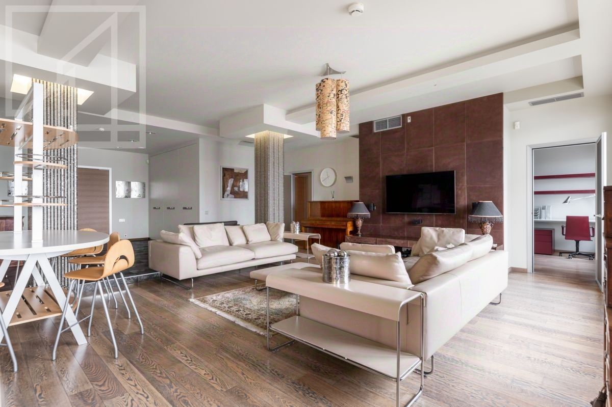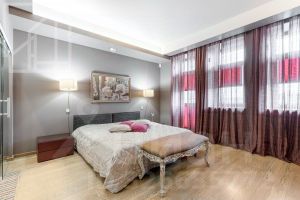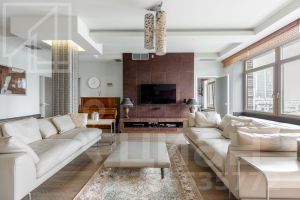 Планировка: просторная кухня-гостиная с обеденной зоной, две спальни, жилая комната (можно использовать как спальню или кабинет), два совмещенных санузла с ванной и душевой кабиной, гардеробная комната, гостевой санузел с душевой кабиной, постирочная, прихожая. Квартира меблирована, укомплектована необходимой бытовой техникой. Потолки 3.3 м. Ремонт в уникальном авторском стиле.