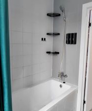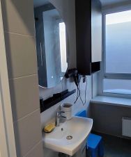 - Набор принадлежностей для душа: гель для душа, шампунь, бальзам для волос, мыло, фен.