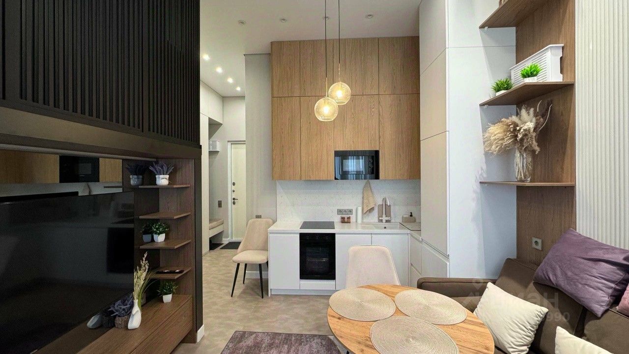Сдается стильная видовая студия в ЖК Огни-2 на последнем этаже.