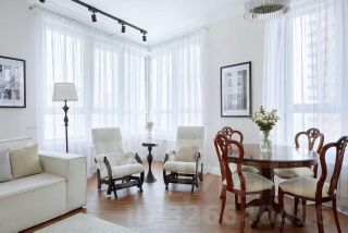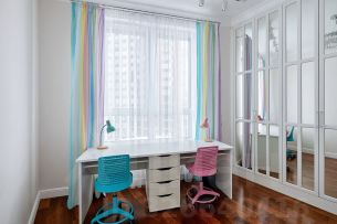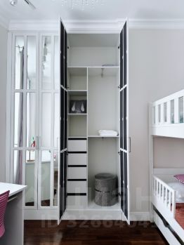 Квартира полностью укомплектована мебелью, частично винтажной, в детской установлена двухуровневая кровать, имеется большое количество систем хранения. Имеются тёплые полы в санузлах, прихожей и кухне-гостиной, сплит-система, высокоскоростной интернет и ТВ.