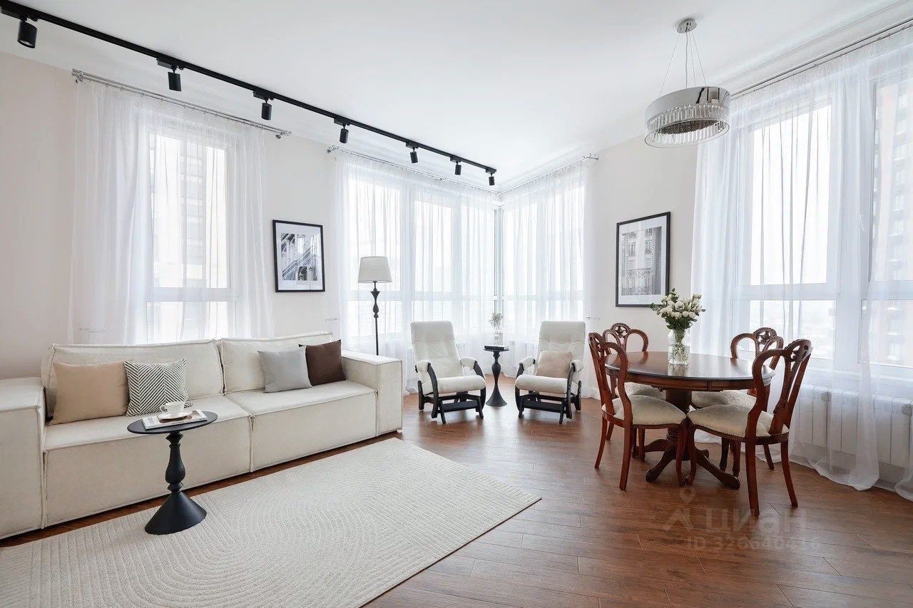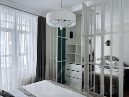 Из панорамных окон открывается прекрасный вид на благоустроенную парковую территорию комплекса. В квартире выполнен современный дизайнерский ремонт с использованием премиальных европейских материалов.