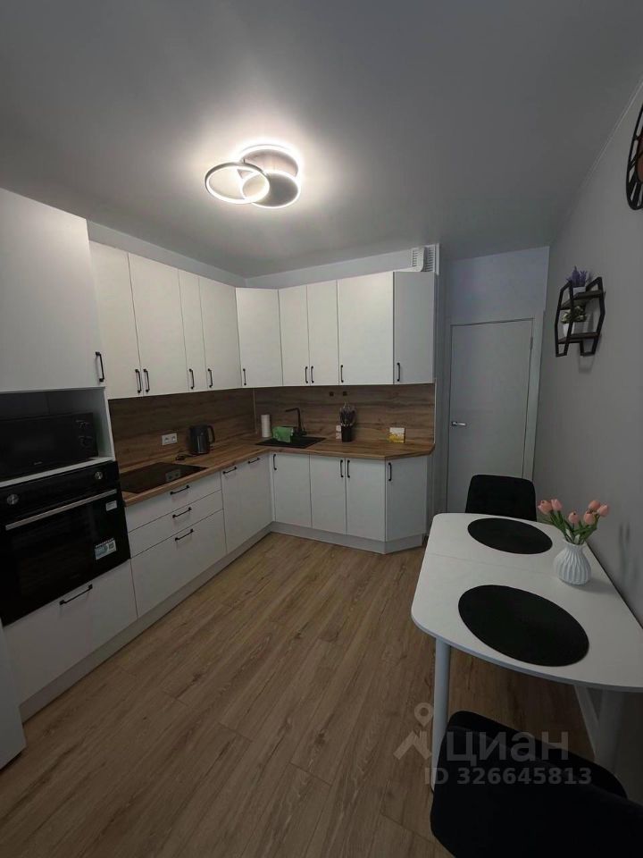 Сдаётся уютная однокомнатная квартира с евроремонтом после ремонта в современном доме на 6-м этаже из 15-ти. Общая площадь — 38,4 кв. м, жилая — 20 кв. м, кухня — 12 кв. м. Высокие потолки 2,9 м. Окна выходят во двор.