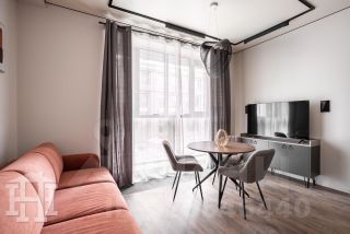 -Интерьер выполнен в светлой, воздушной палитре, что придаёт помещению лёгкость и простор