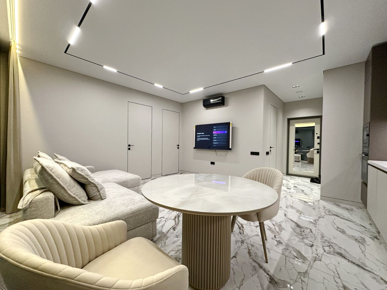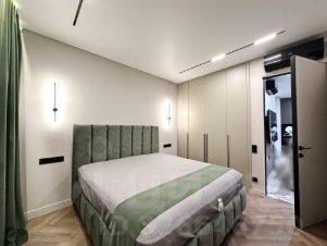 Впервые предлагается великолепная квартира с дизайнерским ремонтом. Дорогой ремонт: парящие потолки, двери (2,40м) и плинтуса и петли на окнах скрытого монтажа, окна изолирующие шум и сквозняки. Современная мебель на заказ и бытовая техника от брендовых производителей: стиральная машина и сушильная машина марки АSKO, посудомоечная машина, измельчитель отходов, вся встроенная техника от Evelux. Панорамные окна на всю стену обеспечивают максимальный свет.