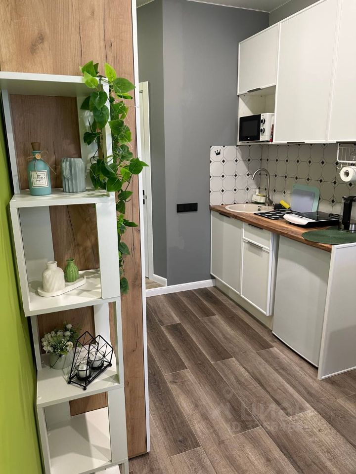 Светлые апартаменты-студия с дизайнерским ремонтом, гармоничными цветами и продуманным пространством. Комфортная спальная зона, обеденный стол и функциональная кухня со всей необходимой техникой. Чисто, светло и по-домашнему уютно.