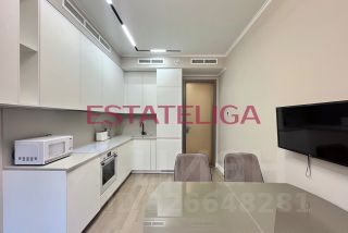 Проведена система кондиционирования фан-койл. Теплые полы в зоне керамогранита, установлена система от протечек. Дизайнерская обстановка, качественная мебель. Вместительный кухонный гарнитур, много мест для хранения в прихожей и спальне.