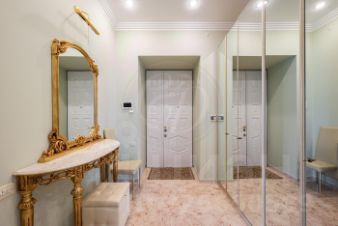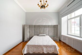 Качественный ремонт в классическом стиле, крашеные стены, паркет, стеклопакеты, высокие потолки. Квартира полностью меблированная. Подогрев полов в холле, кухне и санузле. Интернет, спутниковое ТВ. Дом дореволюционный, хороший подъезд с круглосуточной охраной. Парковка во дворе.