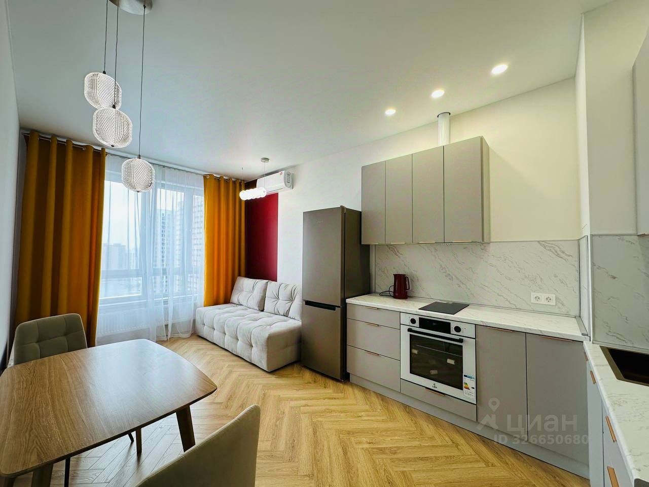 Новая квартира - однокомнатная: кухня - гостиная с полноценным спальным местом и отдельная спальня, только после ремонта. Вы - первые жильцы.