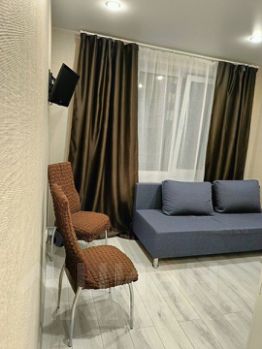 В квартире выполнен евроремонт, поэтому все выглядит стильно и современно. Пространство студии продумано до мелочей: есть необходимая мебель как в комнате, так и на кухне.