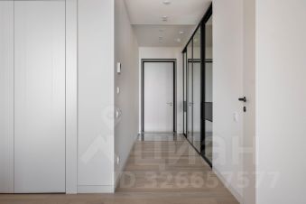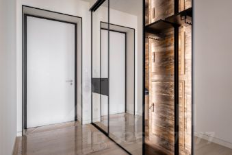 В холле предусмотрен четырехметровый встроенный зеркальный шкаф с кастомным наполнением, спроектированным профессиональным дизайнером интерьера мебели.