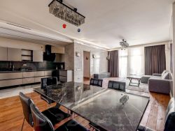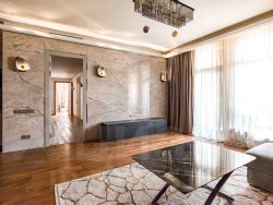 Сдается в долгосрочную аренду уютная квартира в ЖК "Арбат-Тауэр" (Грубер Хаус) с 4-мя спальнями с продуманной планировкой, разделённой на две зоны- жилую и гостевую: просторная кухня-гостиная, 2 санузла в жилой зоне, 1 гостевой санузел, 2 гардеробных, одна из которых 16 кв. м., в постирочной установлены стиральная и сушильная машины. Дизайнерский ремонт из высококачественных материалов выполнен 4 года назад, установлены теплые полы. Квартира меблирована, кухня укомплектована всей необходимой техникой: 2 холодильника, посудомоечная машина, кофе машина, микроволновая печь, духовой шкаф, варочная панель. В всем доме установлена сплит система очистки воздуха. Окна выходят во двор. Жилой комплекс расположен на огороженной территории с круглосуточной охраной, видеонаблюдением, консьерж-сервисом и контрольно-пропускным пунктом. В шаговой доступности Смоленская набережная, кафе, рестораны, театры и музеи, до станции Смоленская 7 м/п.