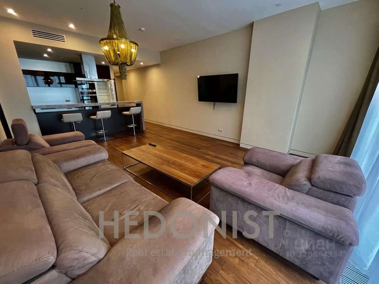 Апартамент состоит из: просторной кухни-гостиной, спальни, 2 санузлов, гардеробной, постирочной зоны.