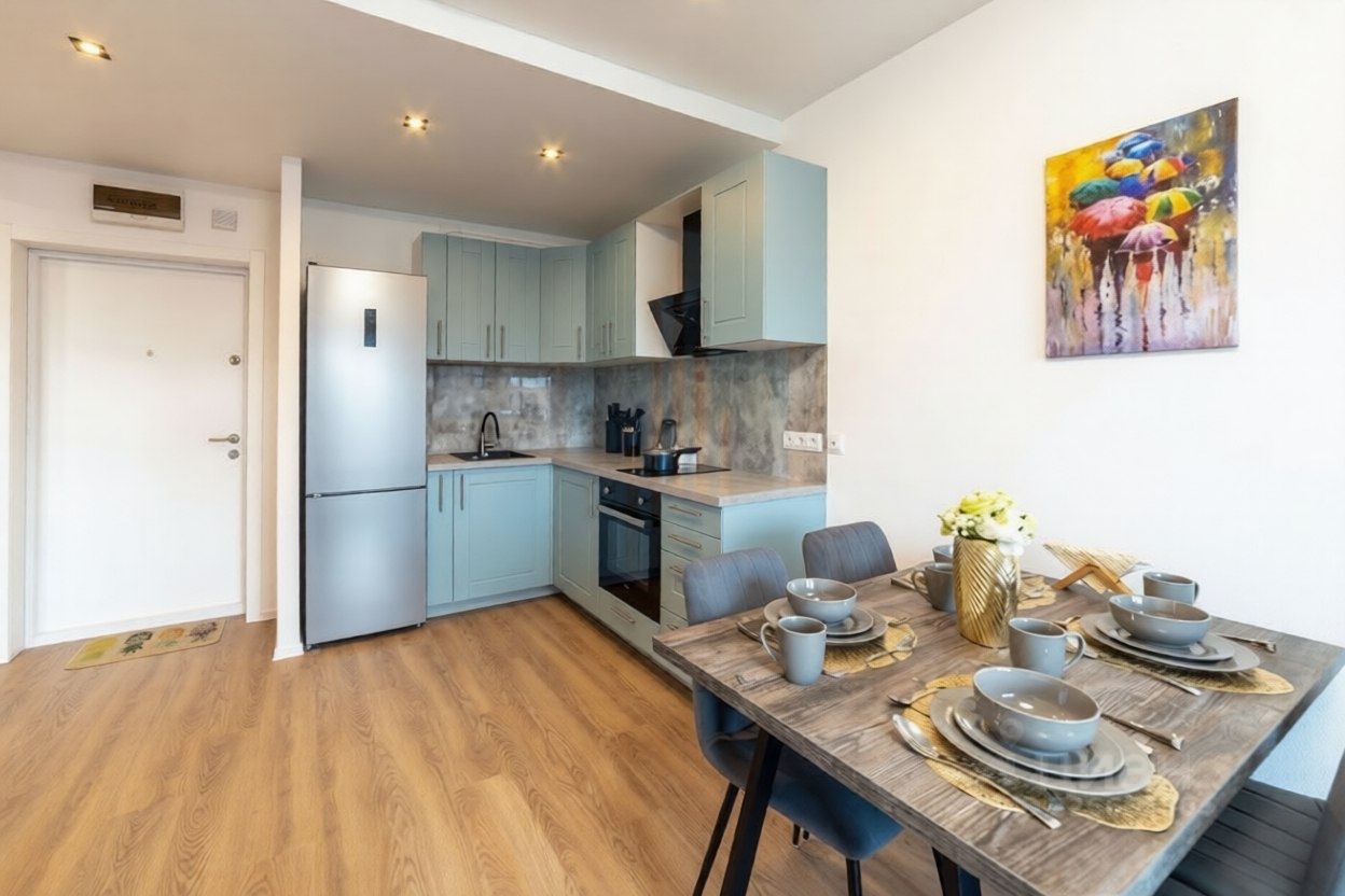 Сдается светлая европейская двухкомнатная квартира с дизайнерским ремонтом в современном панельном доме 2023 года постройки. Просторная кухня площадью 10 м² оборудована всей необходимой техникой, включая холодильник и плиту. Одна комната изолированная, что обеспечивает комфорт и приватность.