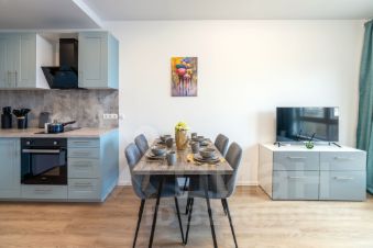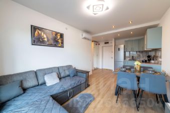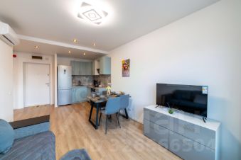 В квартире установлены шкафы и телевизор. Санузел совмещенный, выполнен в современном стиле с качественной сантехникой. Из окон открывается вид на красивый закат и просматривается горизонт (не окна в окна), что позволит ощущать приватность.