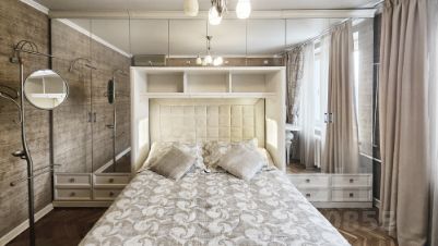 Главная спальня с двуспальной кроватью, вместительными шкафами, комодом и удобным рабочим столом. Вся мебель индивидуального изготовления.
