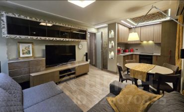 Стильные интерьеры общей зоны, объединенная кухня-гостиная располагают к комфортному отдыху всей семьи. Стол раскладывается на 6 человек. Широкий, мягкий диван, большой телевизор, акустика на 6 каналов. При этом в квартире есть еще три изолированные спальни и можно, при необходимости, оборудовать четвертую.