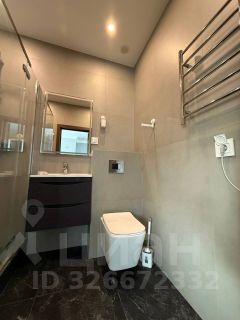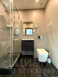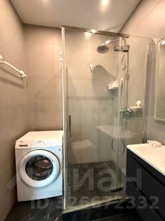 Совмещенный санузел с душевой кабиной, зеркало с умной подсветкой, полотенцесушитель, стиральная машина.