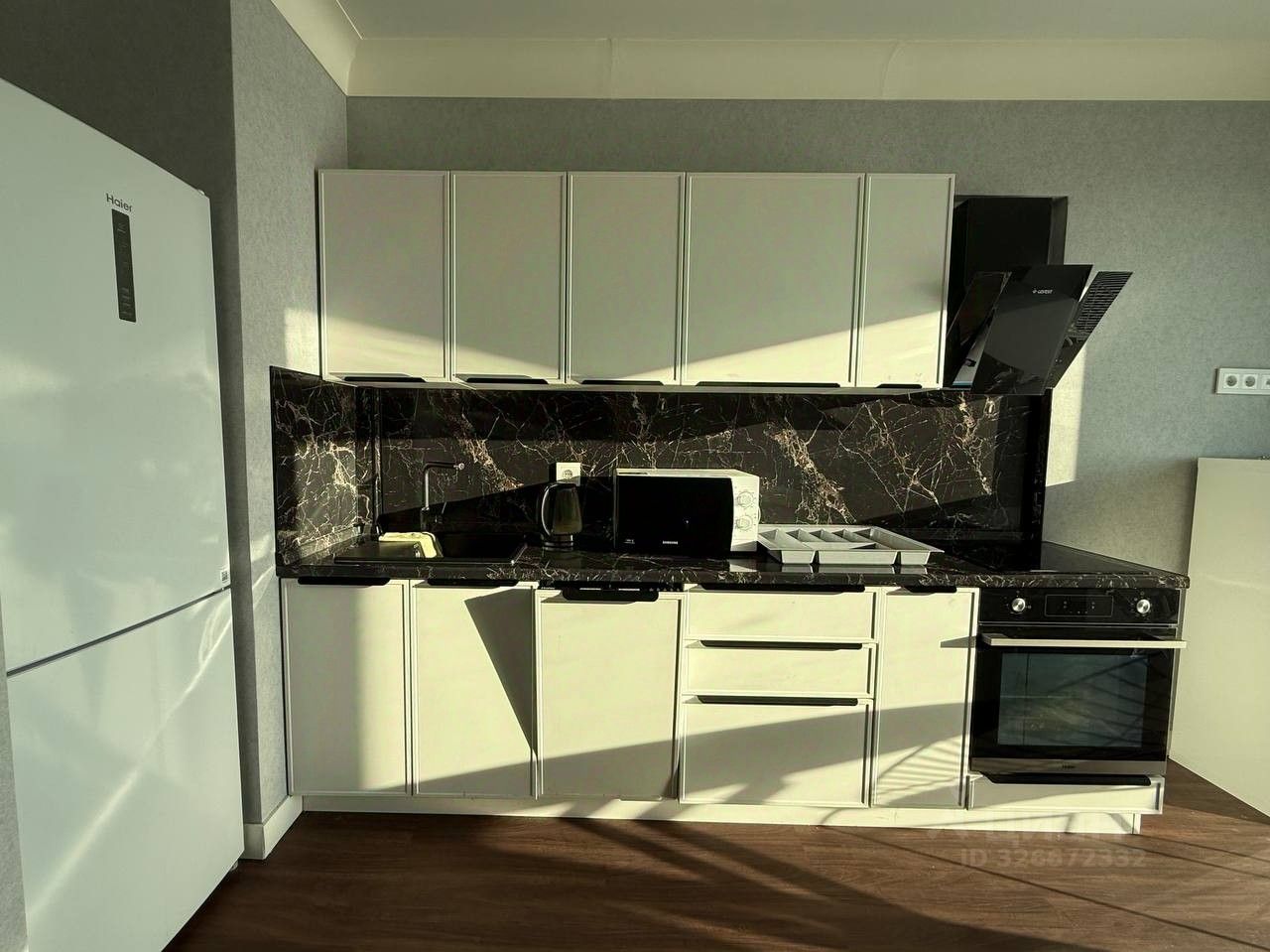 В кухонной зоне установлена качественная бытовая техника. Укомплектована индукционной плитой, холодильник, духовой шкаф, посудомоечная машина, вытяжка микроволновая печь, вместительные шкафчики.