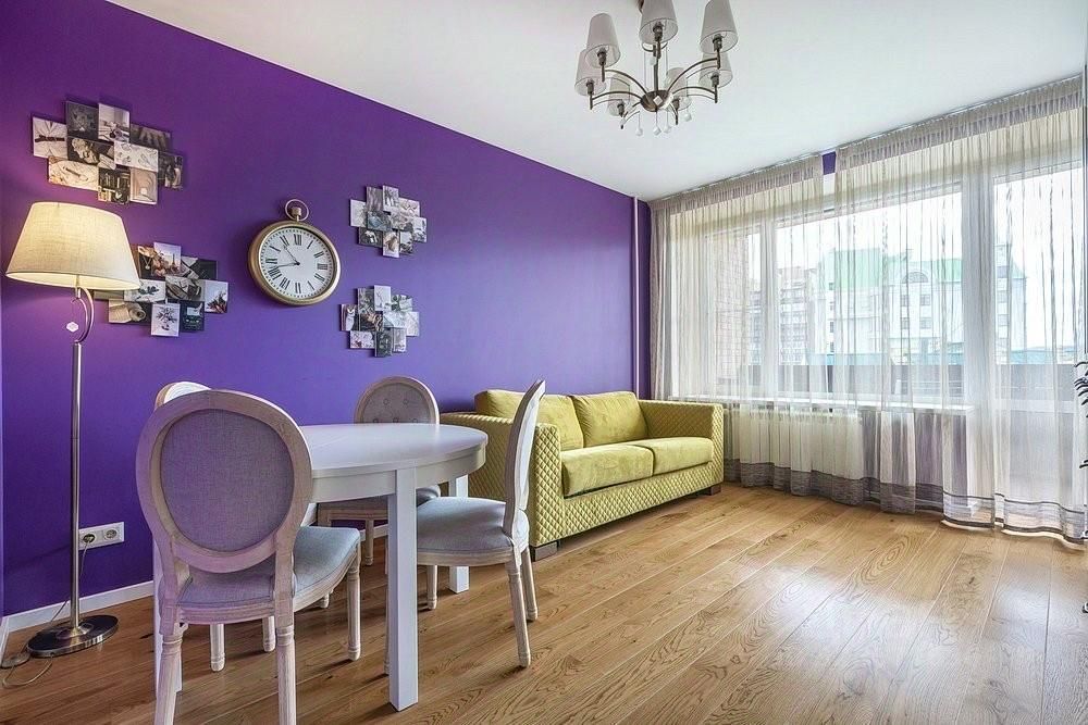 В квартире выполнен дизайнерский ремонт. Окна выходят как на улицу, так и во двор. Квартира светлая и комфортная. Планировка включает гостиную комнату с выходом на лоджию, спальню, совмещенный санузел с ванной. На кухне и в комнатах есть вся необходимая мебель. Для вашего удобства установлены кондиционер, холодильник, посудомоечная и стиральная машины, а также телевизор. Просторная лоджия , высокие потолки.