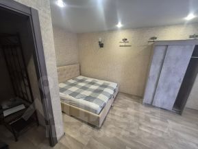 В квартире есть всё необходимое для комфортного проживания: на кухне и в комнате установлена мебель, а также техника — кондиционер, холодильник, телевизор и стиральная машина. Планировка квартиры включает совмещённый санузел с ванной и балкон, окна выходят на улицу.