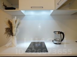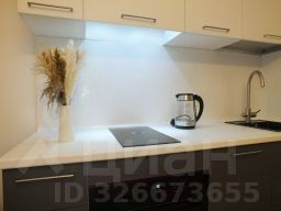 Студия идеально подойдёт для одного человека или пары. В ней есть всё необходимое для комфортного проживания: мебель, бытовая техника, включая посудомоечную машину, кондиционер, духовой шкаф, варочную панель, активную вытяжку, отпариватель для одежды.