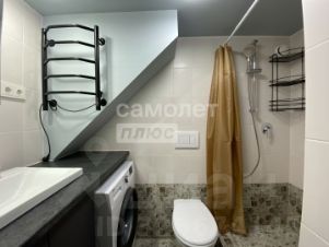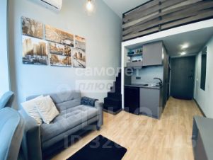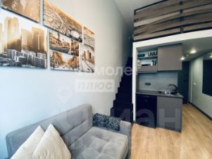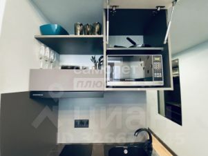 Апартамент оборудован необходимой техникой и посудой (микроволновка, стиральная машина, холодильник, чайник, столовыен принадлежности). Из мебели: двуспальная кровать, удобный гостевой диван, барные стулья, комод, мобильные тумбочки, системы хранения на антресоли. Кондиционер установлен.
