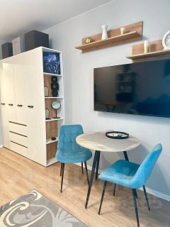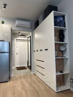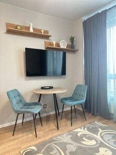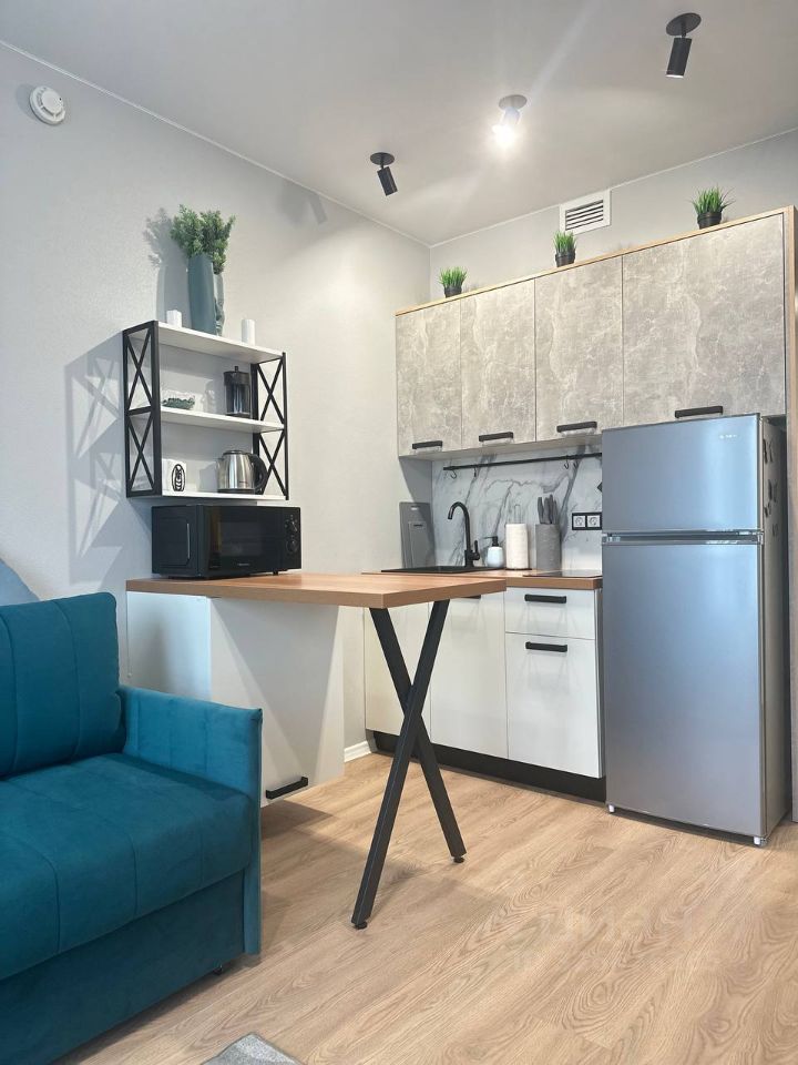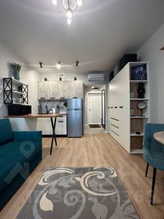В квартире сделан косметический ремонт, благодаря чему она выглядит свежо и современно. В студии есть всё необходимое для комфортной жизни: кондиционер, холодильник, телевизор и стиральная машина. На кухне и в комнате предусмотрена удобная мебель, поэтому можно сразу заселяться. В ванной комнате установлена душевая кабина, что является отличным решением для экономии пространства.
