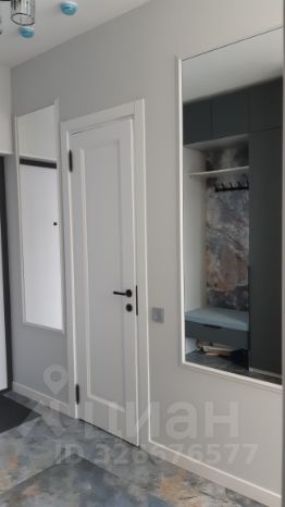 В прихожей есть встроенный шкаф с банкеткой, настенные зеркала позволяют видеть себя в полный рост.