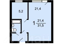Общая площадь 31,5 м2, кухня 5,2 м2, комната 21,4 м2