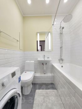 * Совмещенный санузел отделан плиткой до потолка. Установлена стиральная машина-автомат.