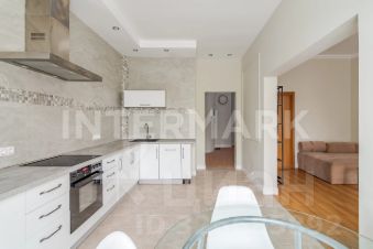 ID 12341. Светлая и стильная 2-комнатная квартира в районе Замоскворечье. Квартира полностью меблирована, с высоким уровнем отделки, интересной планировкой, отличным техническим оснащением, качественным оборудованием и сантехникой. В квартире кондиционирование, высокоскоростной интернет. Функциональная планировка: общая площадь 98 кв. м, просторный холл, гостиная, просторная кухня с обеденной зоной, спальня, гардеробная, душевая комната и гостевой туалет, постирочная, есть балкон. Высокие потолки. Фиксированная парковка во дворе дома за шлагбаумом. Квартира расположена в доме 1917 года постройки после полной реконструкции с заменой перекрытий и инженерных систем, что превратило его в клубный дом на 16 квартир. Сам дом расположен в Замоскворечье, в районе старой Москвы с неповторимой историко-культурной и архитектурной атмосферой. В шаговой доступности 2 станции метро ("Третьяковская", "Новокузнецкая"), Кремль, музеи, скверы и парки, великолепная ресторанная и магазинная инфраструктура.