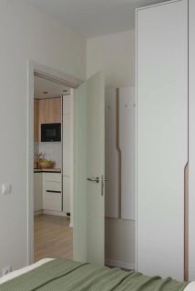 В спальной комнате кровать 160х200 с ортопедическим матрасом, подъемным механизмом и вместительной нишей для хранения; установлен большой шкаф и отдельная вешалка для повседневной одежды. С прихожей также установлен шкаф-купе с системой хранения.