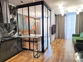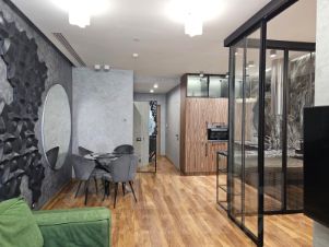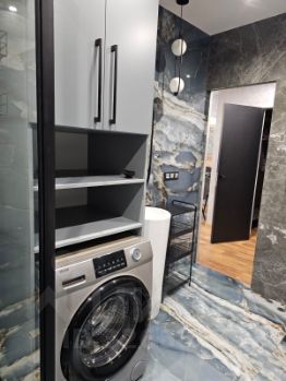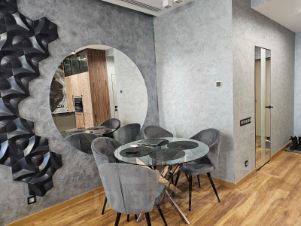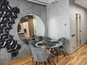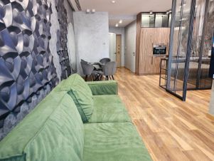 В квартире выполнен дизайнерский ремонт, который сочетает в себе стиль и комфорт. Каждая комната обставлена современной мебелью, включая кухонный гарнитур и мягкую мебель в комнате. Из техники в вашем распоряжении кондиционер, холодильник, посудомоечная машина, телевизор и стиральная машина. Санузел совмещен и оборудован как ванной, так и душевой кабиной, поэтому вы можете выбирать, что вам удобнее в данный момент.