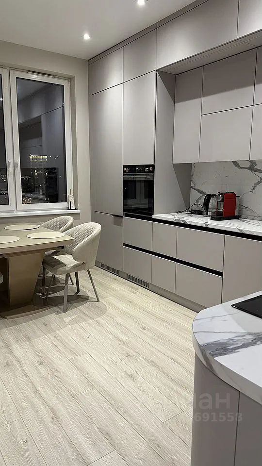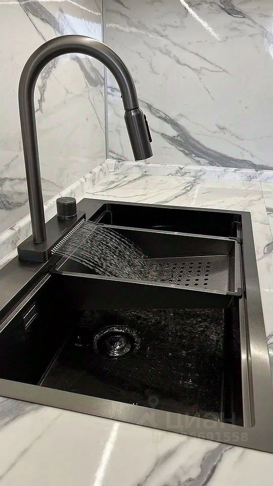 Большая кухня с качественной техникой, мойка с измельчителем отходов.