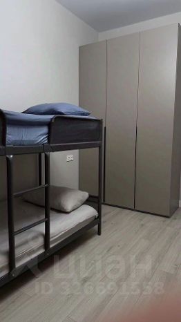 Третья комната с двухэтажной детской кроватью, столом, шкафом.
