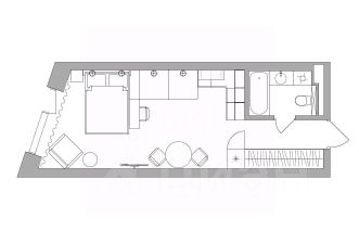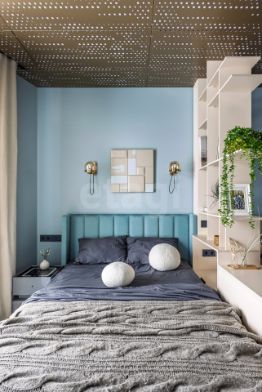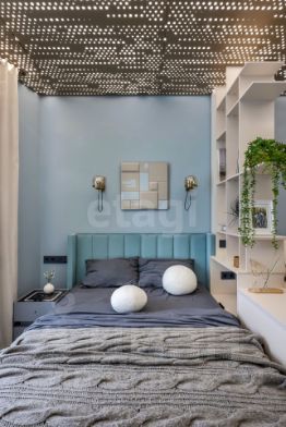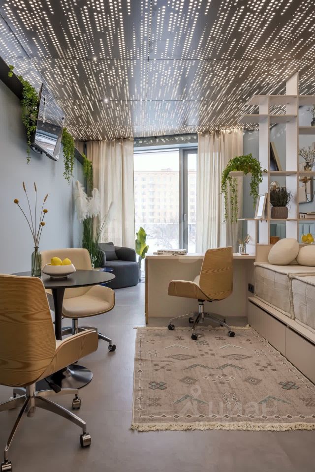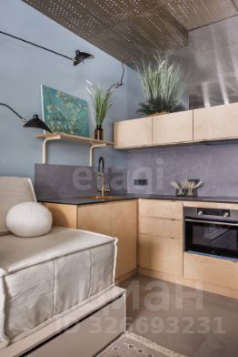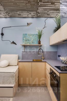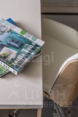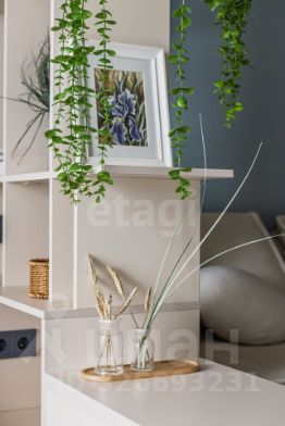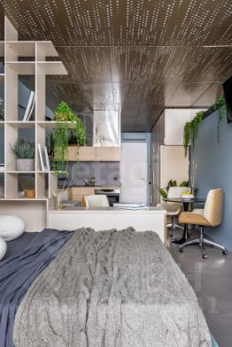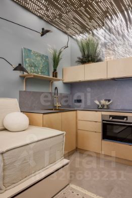 В апартаментах выполнена дизайнерская отделка из премиальных материалов. Просторная жилая зона включает в себя все необходимое для комфортной жизни: уютную зону отдыха с диваном и креслами, рабочую зону с письменным столом. В квартире предусмотрено множество зон хранения, трендовая дизайнерская кухня из ЭКО-фанеры.