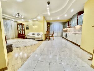 Квартира с дизайнерским ремонтом, в отличном состоянии. Гостиная 42 м2 с выделенной кухонной зоной 18 м2. Изолированная спальня 22 м2.