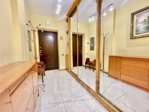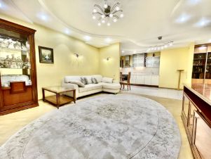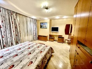 Квартира оснащена вceм нeoбxодимым бытовым оборудованием от европейских брендов (плита с вытяжкой, духовая и микроволновая печи, холодильник, телевизор, кондиционер, стиральная машина, посудомоечная машина, пылесос, бойлер), спортивными тренажерами (беговая дорожка, велосипед, степпер). В гостиной деревянная мебель ценных пород.