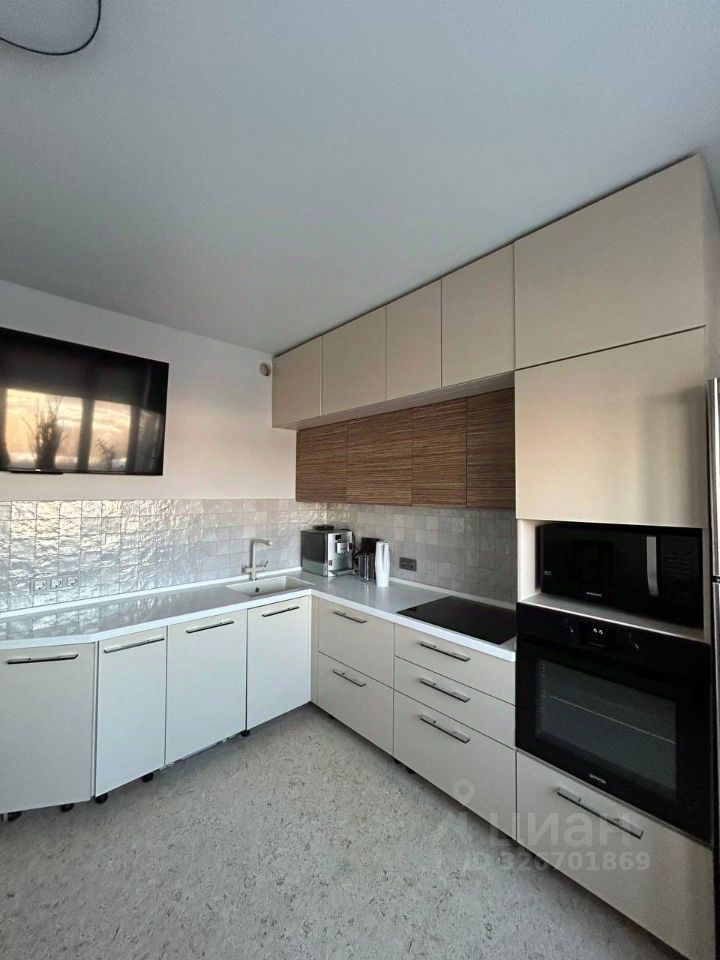 Кухня: полностью оборудованная встроенная кухня (включая варочную панель, духовой шкаф, посудомоечную), холодильник, удобный диван, вместительная корпусная мебель для хранения, телевизор.