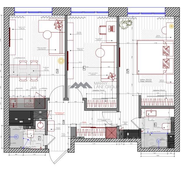 Квартира расположена на 11 этаже. Общая площадь - 66.2 кв.м. Кухня-гостиная, мастер спальня с с/у, все спальни оснащены встроенными системами хранения, с/у с душевой.