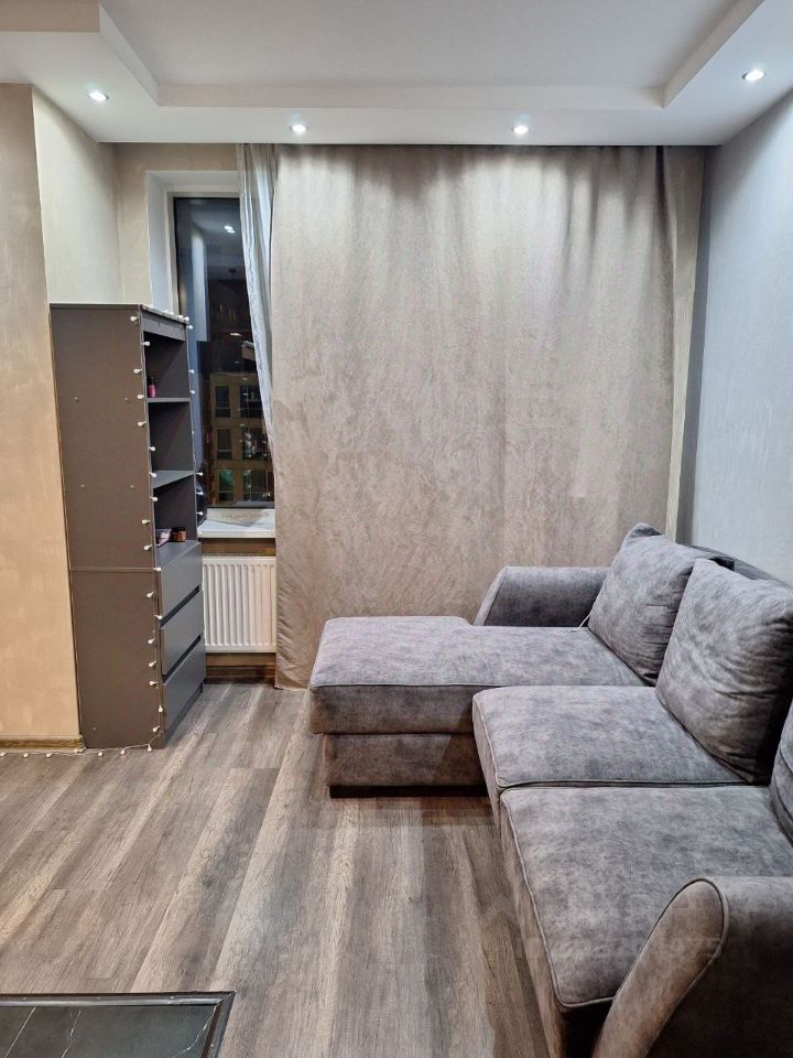 Студия находится на 8 этаже 9-этажного дома. В подъезде 1 грузовой лифт. Окна во двор. Соседи тихие.