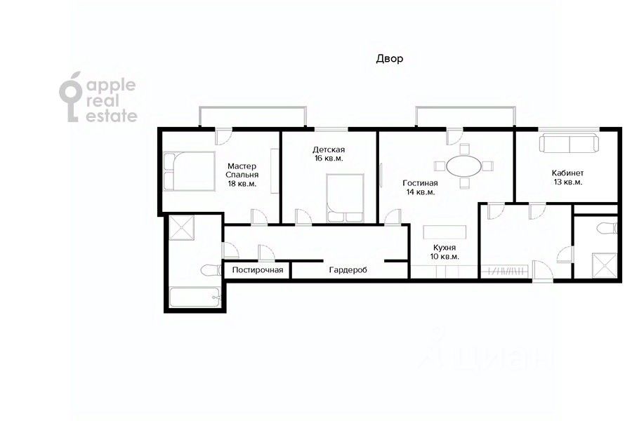 Планировка: кухня-гостиная, 2 спальни, кабинет, гардеробная и постирочная комната, 2 с/у. Общая площадь: 104 кв.м. Потолки 3 м. Ремонт в современном и минималистичном стиле. Квартира со всей необходимой мебелью и бытовой техникой Kuppersbusch, Schulthess Maschinen AG. Гардеробная система премиум-класса Molteni&C.
