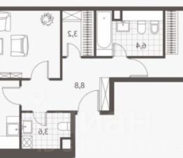 Гостевой санузел = 3,2 м²