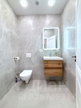 Зеркало с подсветкой и подвесная тумба с раковиной.