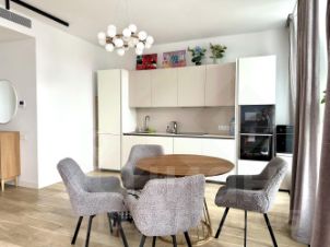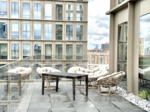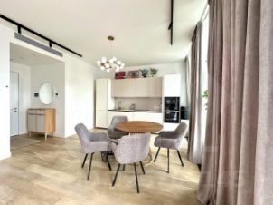 Жилой премиум Квартал Lucky. В аренду предлагается ВИДОВАЯ евро 3х комнатная квартира с большой ТЕРРАСОЙ. Окна выходят на запад. Угловая планировка квартиры включает в себя кухню-столовую-гостиную 24м с выходом на террасу, 1 мастер спальня со своей гардеробной и санузлом(душевая кабина), 1 комната свободного назначения, санузел с ванной, прихожая с вместительным шкафом. Техника NEFF и сантехника Villeroy&Boch премиальной линейки, в наличии есть всё необходимое для комфортного проживания. Система кондиционирования климат-контроль. Умный дом.