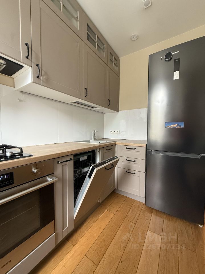 - кухня со встроенный техникой: посудомоечная машина, варочная панель, духовка. Холодильник.