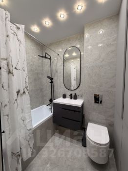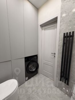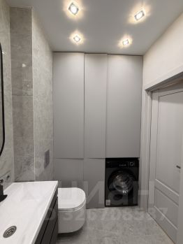 Стиральная машина разместилась в ванной комнате, которая вмещает